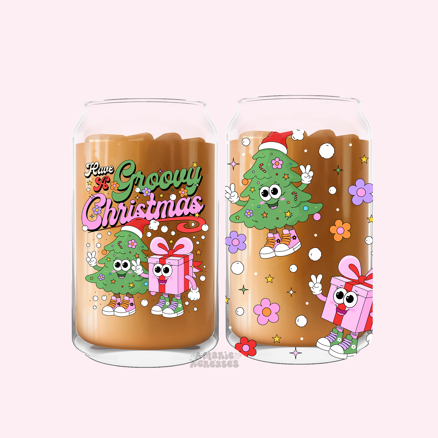 Have A Groovy Christmas Retro Character Glass Cup