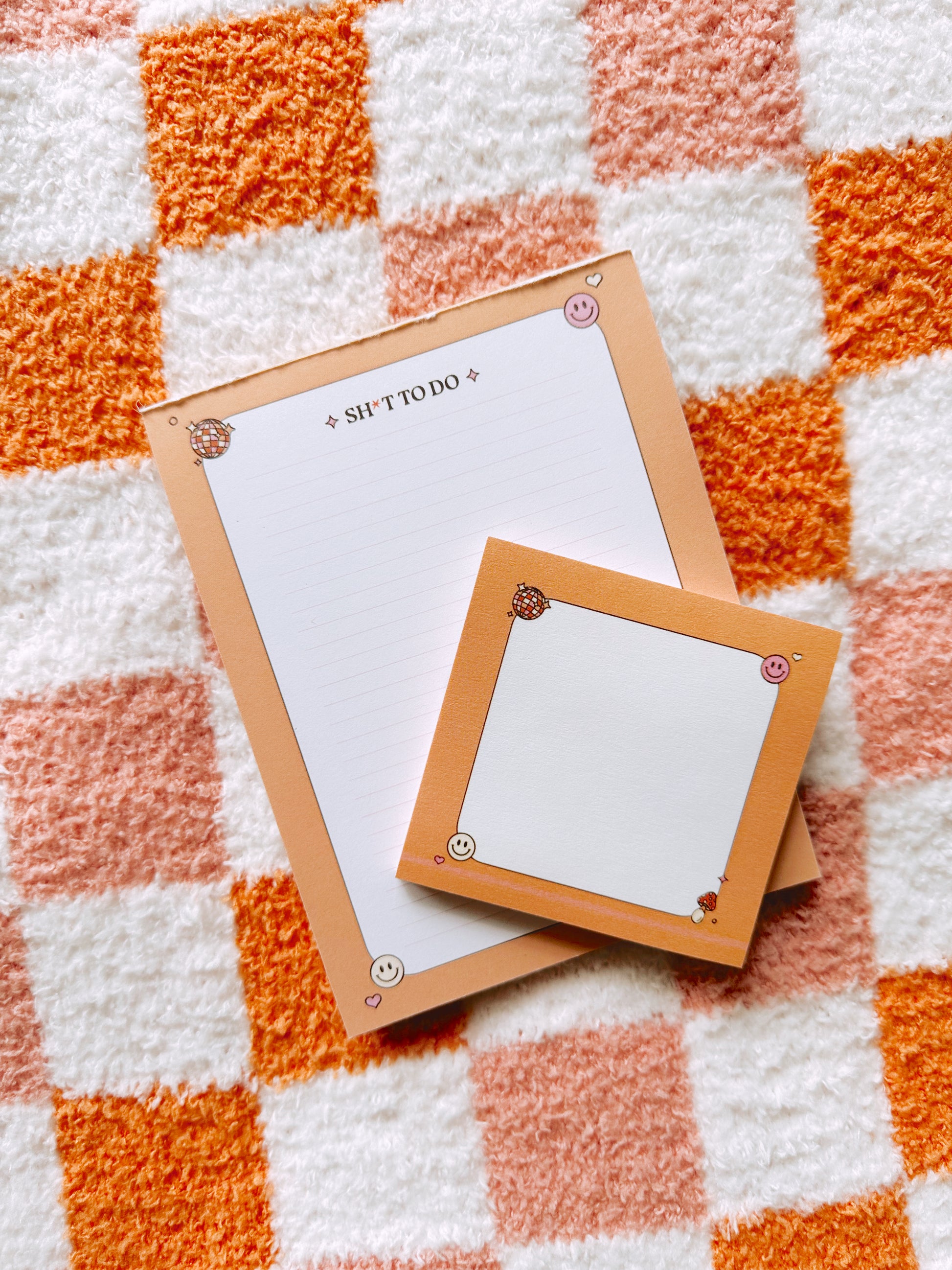 Get sh*t done in style with our playful and quirky Sh*t To Do Notepad! Available in pink or apricot, each page is adorned with a groovy disco ball and mushroom border. Say goodbye to boring lists and hello to fun productivity!